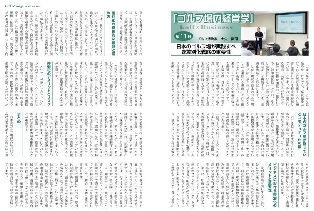ゴルフ界の総合経営誌『月刊ゴルフマネジメント』で、経営に関するコラムを連載させていただいております。