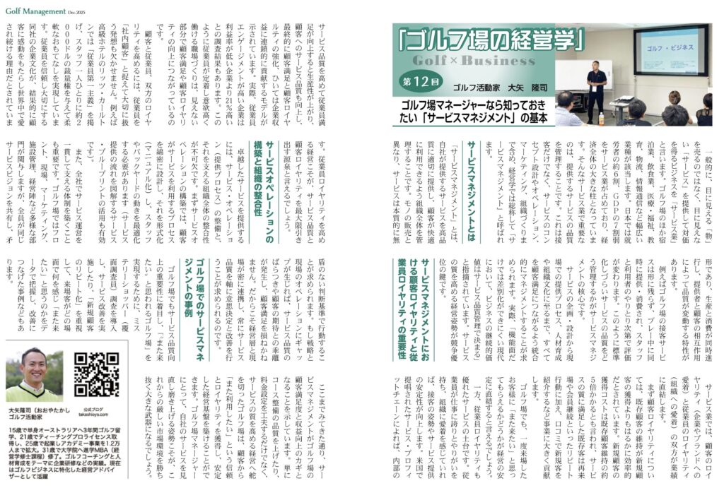 第12回はのテーマは『ゴルフ場マネージャーなら知っておきたい「サービスマネジメント」の基本』です。