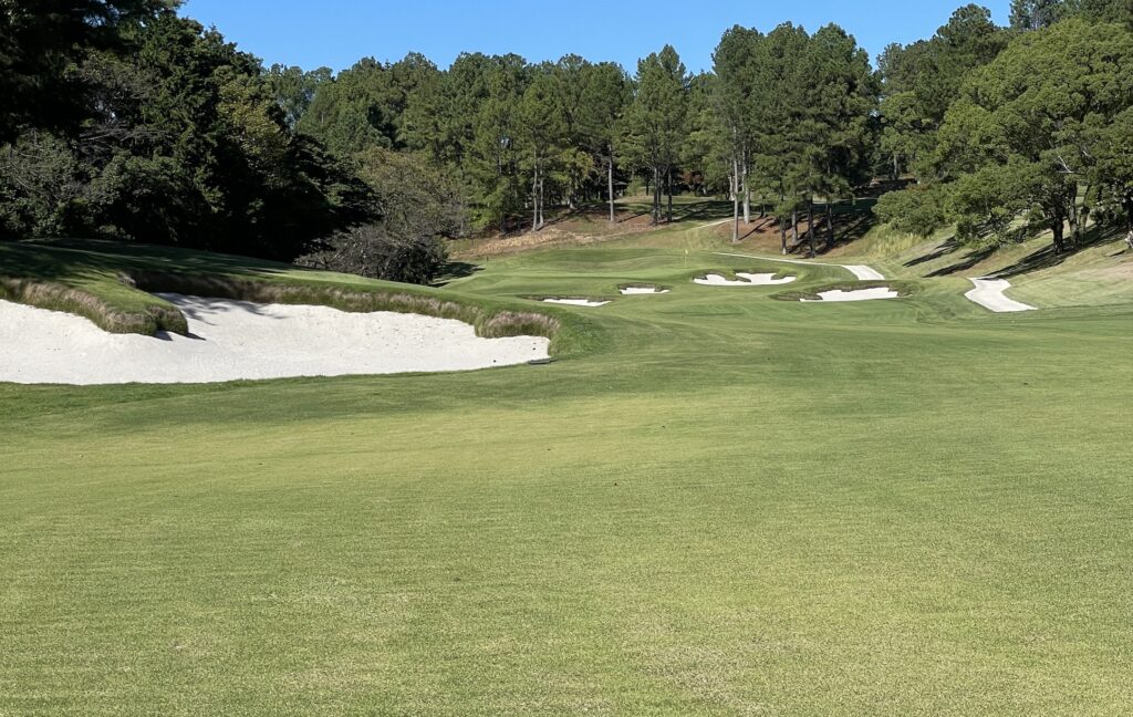 自動運転芝刈機で美しく刈り込まれたフェアウェイ