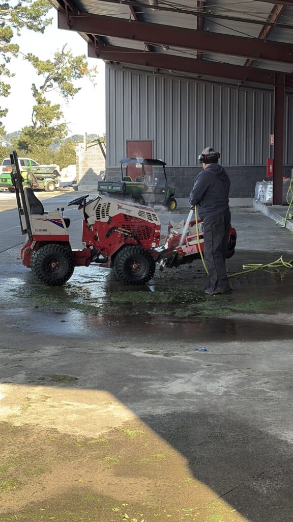 レイクコースと言われているにも関わらず、実はこのコースには池が一つもありません(レイクコースの由来はコースに隣接するマーセド湖からきています)。さらにサンフランシスコは年間の降水量が500ミリ以下(東京は1600mm以上)と水に恵まれたエリアとは言えず、実はコースへの灌水はすべて生活用水を再生してリサイクルウォーターを使っています。管理棟では重機などについた芝や泥を洗浄した水を再利用するためのリサイクル設備もあり、水を一滴たりとも無駄にしないという徹底ぶりです。